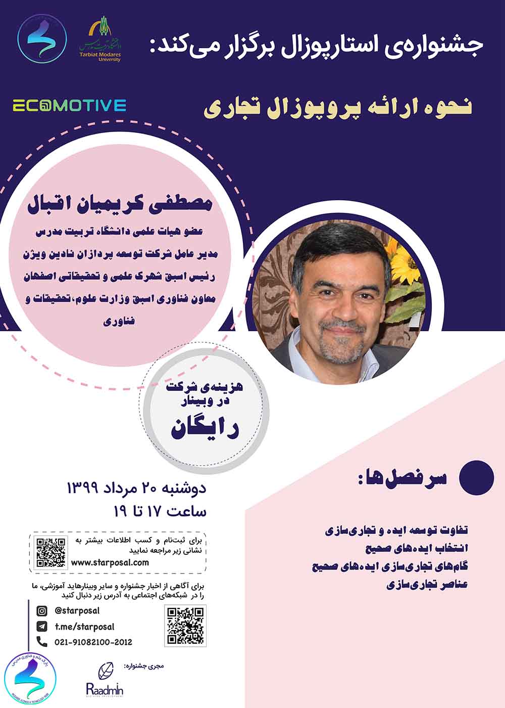 پارک علم و فناوری دانشگاه تربیت مدرس وبینار آموزشی «نحوه ارائه پروپوزال تجاری» را برگزار میکند.