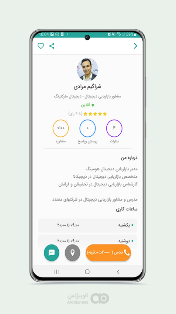 همچنین بهطور میانگین روزانه حدود 30 درخواست مشاوره در سایت ثبت و حدود 5 الی 10 جلسه آنلاین ویدئویی و حضوری برگزار میشود. کاربران الوبیزنس از طریق اپلیکیشن اندروید و وب اپلیکیشن در ساعاتی که مشاور از ابتدا تعیین کرده میتوانند با مشاوران تماس بگیرند.